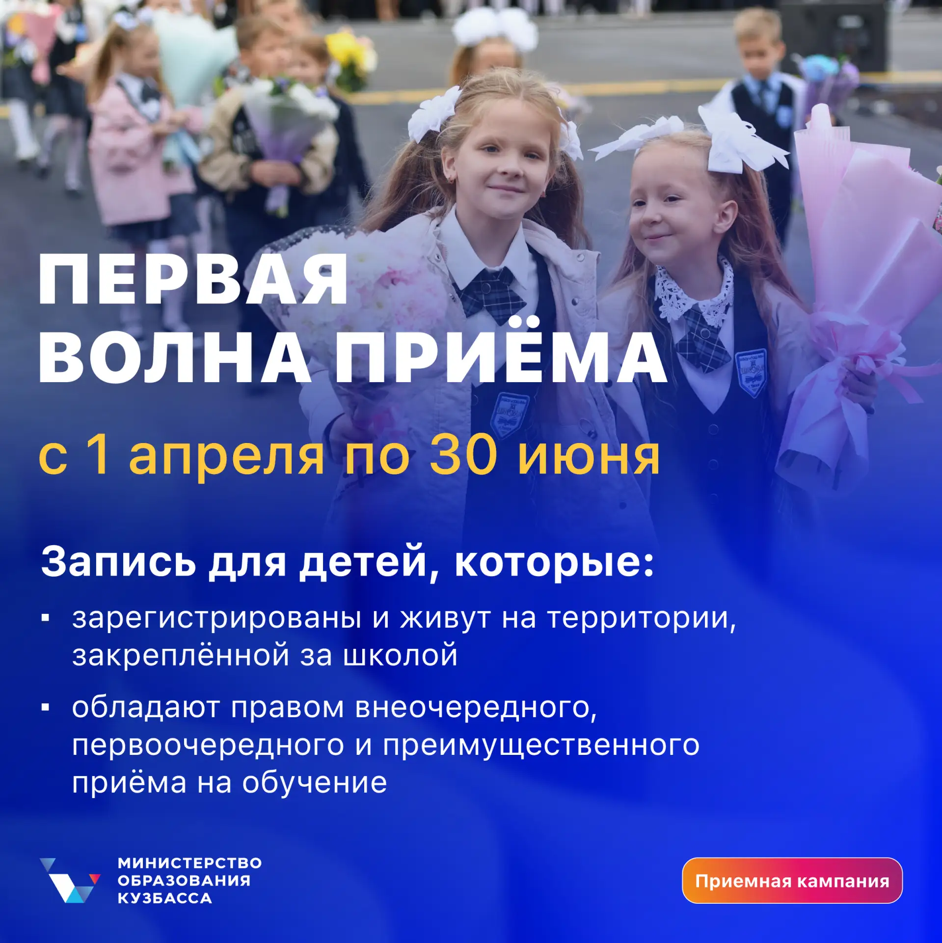 ✅Первая волна приёма в Кузбассе начнётся 1 апреля и продлится до 30 июня. В карточках собрали для вас всю полезную информацию. Сохраняйте, чтобы не потерять.